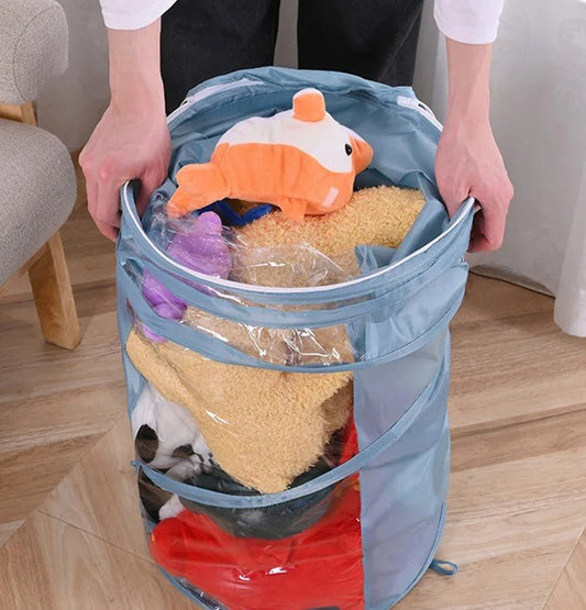 Transparent Cylindrical Toy Storage Bag – Dustproof Display Bucket for Plush Dolls & Children's Toys