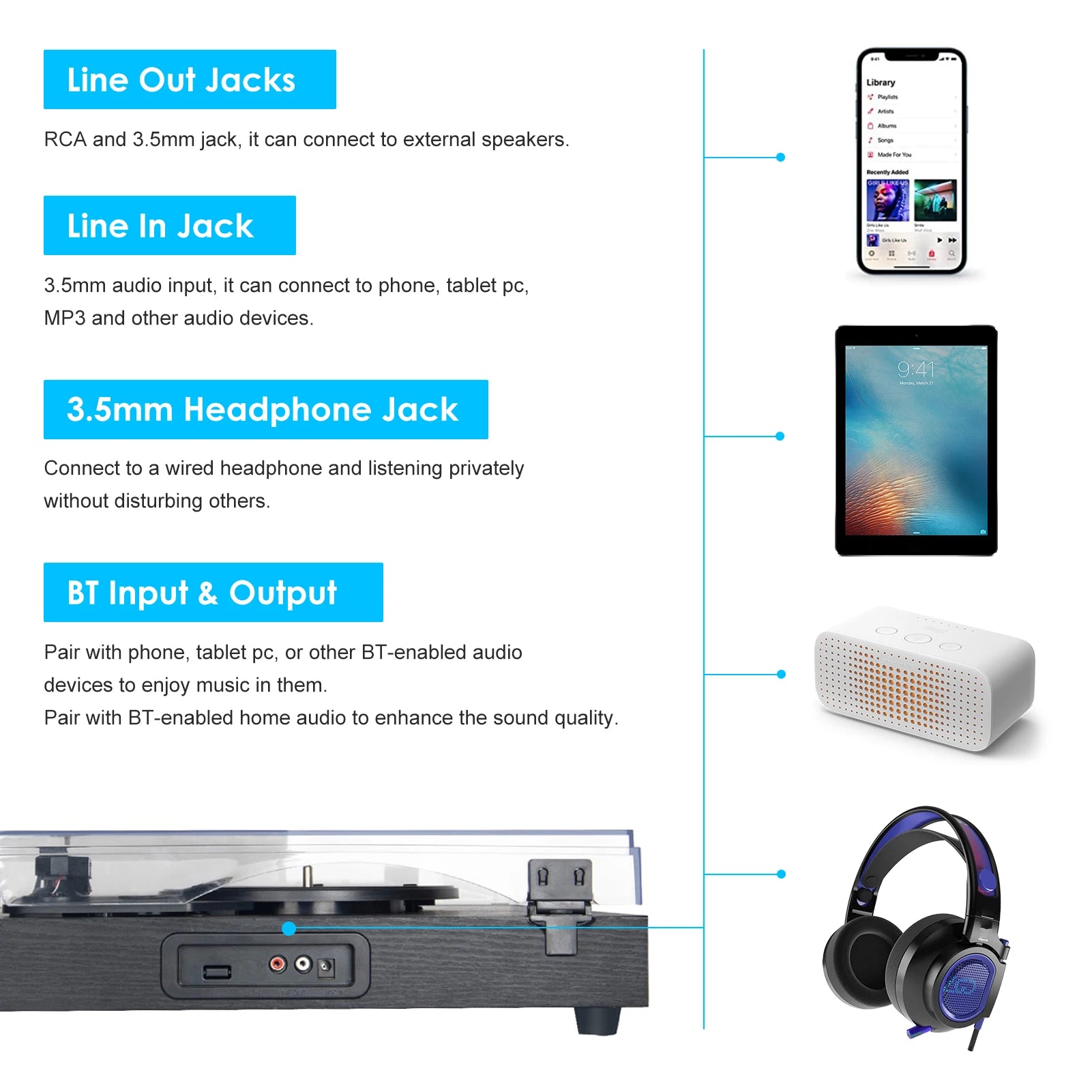 Whether you're a vinyl enthusiast or a music lover looking to explore new sounds, our Vinyl Record Player Bluetooth is the perfect choice for bringing music to life in your home.